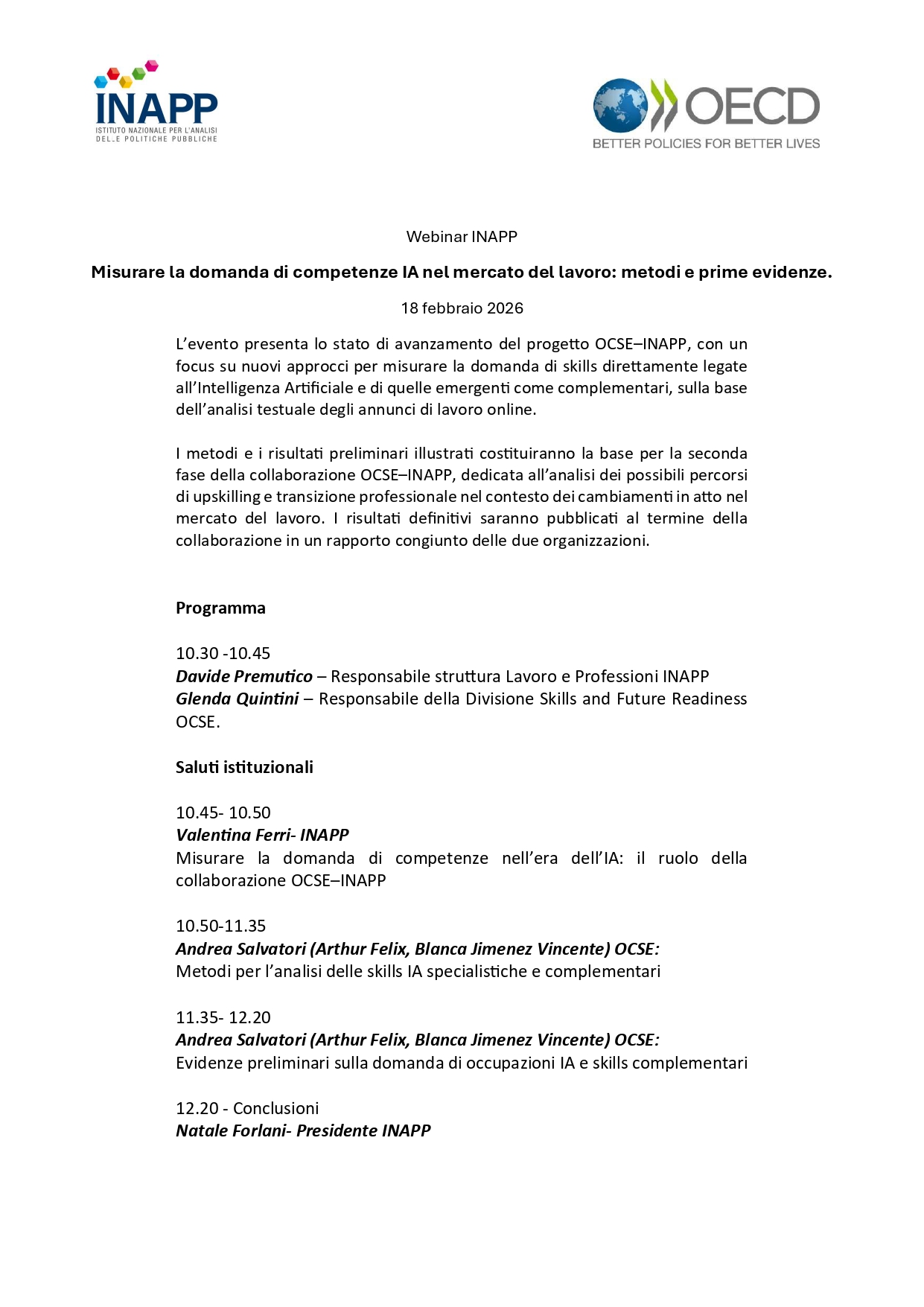 ![]() MIGRAZIONI, LAVORO E INTEGRAZIONE IN ITALIA 23 febbraio 2026 – Auditorium INAPP – Corso d’Italia, 34 – dalle ore 14,30 alle ore 17,00 – Roma |