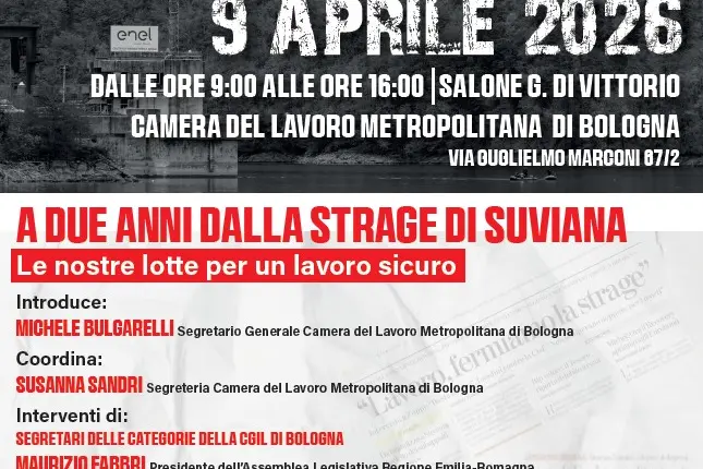 ![]() A DUE ANNI DALLA STRAGE DI SUVIANA. LE NOSTRE LOTTE PER UN LAVORO SICURO 9 aprile 2026 - presso la camera del lavoro metropolitana - salone G. Di Vittorio - […] |