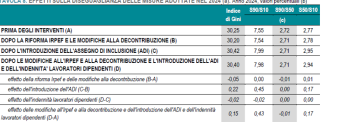 L’Istat ha presentato le simulazioni riguardanti gli effetti sui redditi disponibili delle famiglie derivanti dalle politiche di redistribuzione introdotte nel 2024 e segnatamente dagli interventi normativi di cui: alla riforma delle aliquote e degli scaglioni Irpef e delle detrazioni da lavoro; alla eliminazione del Reddito/Pensione di Cittadinanza (RdC) e all’introduzione dell’Assegno di Inclusione (ADI); alla prosecuzione dell’esonero contributivo parziale per i lavoratori dipendenti e dell’introduzione dell’esonero totale per le lavoratrici dipendenti madri; alla indennità una tantum per i lavoratori dipendenti (c.d. Bonus Natale). Gli effetti sono valutati attraverso il confronto tra la stima del reddito disponibile nel 2024 e la stima di quello che si sarebbe osservato se i parametri di tali politiche fossero rimasti quelli in vigore nel corso del 2023.