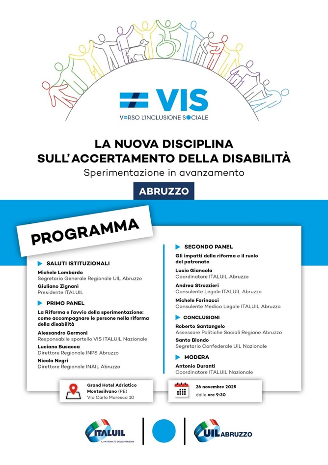 "LA NUOVA DISCIPLINA SULL'ACCERTAMENTO DELLA DISABILITA" 26 novembre 2025 - Montesilvano (PE) - ore 9,30