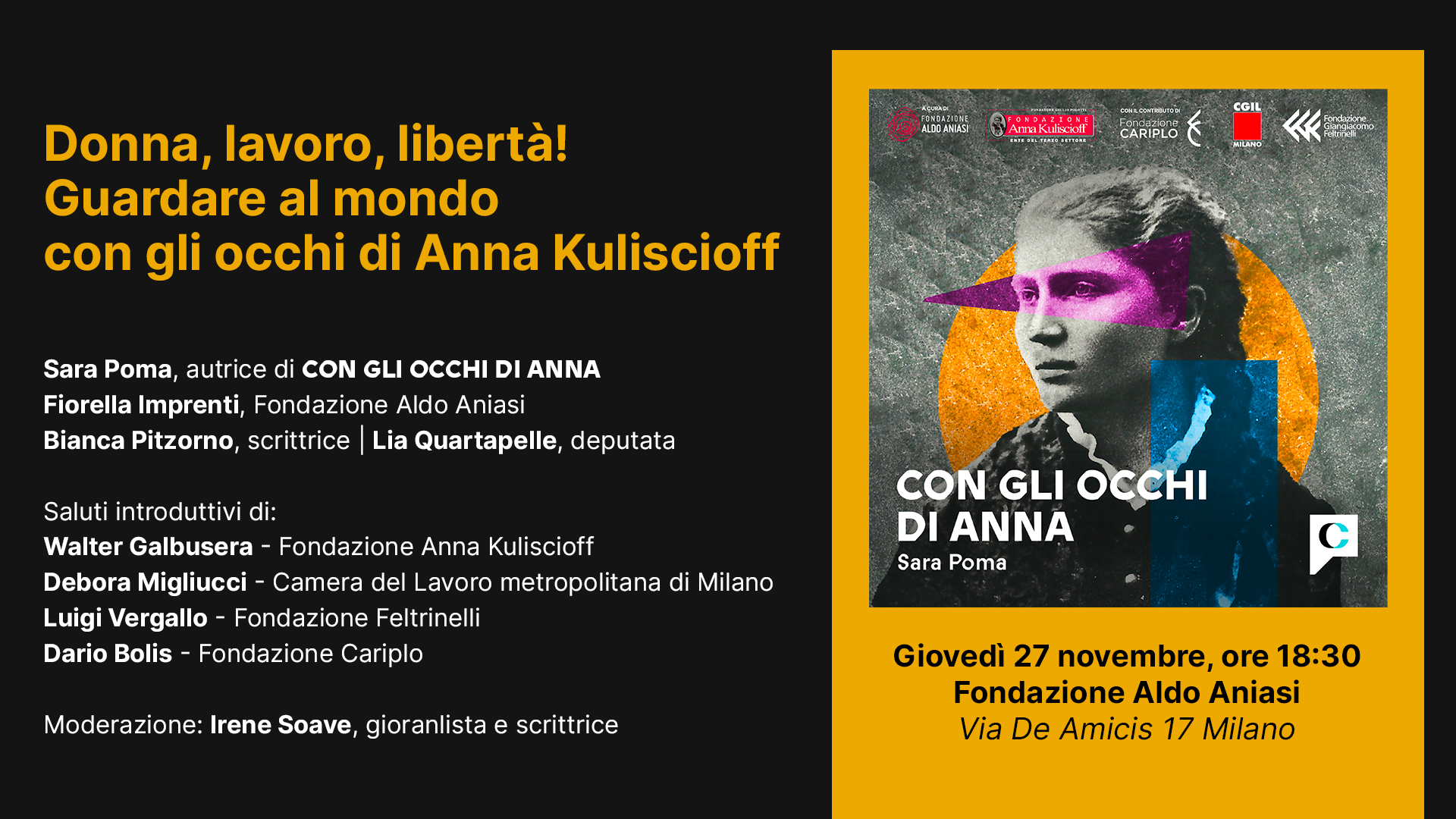 DONNA, LAVORO, LIBERTA’! GUARDARE AL MONDO CON GLI OCCHI DI ANNA KULISCIOFF 27 novembre 2025 – Fondazione Aldo Aniasi – Via De Amicis, 17 – Ore 18,30 - Milano