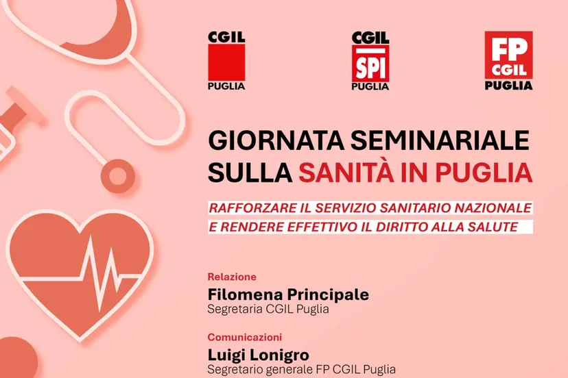 GIORNATA SEMINARIALE SULLA SANITA' IN PUGLIA 8 ottobre 2025 - presso la sala Trulli - Cgil Puglia - ore 9.30 - Bari La segretaria confederale della Cgil Daniela Barbaresi concluderà la giornata […]