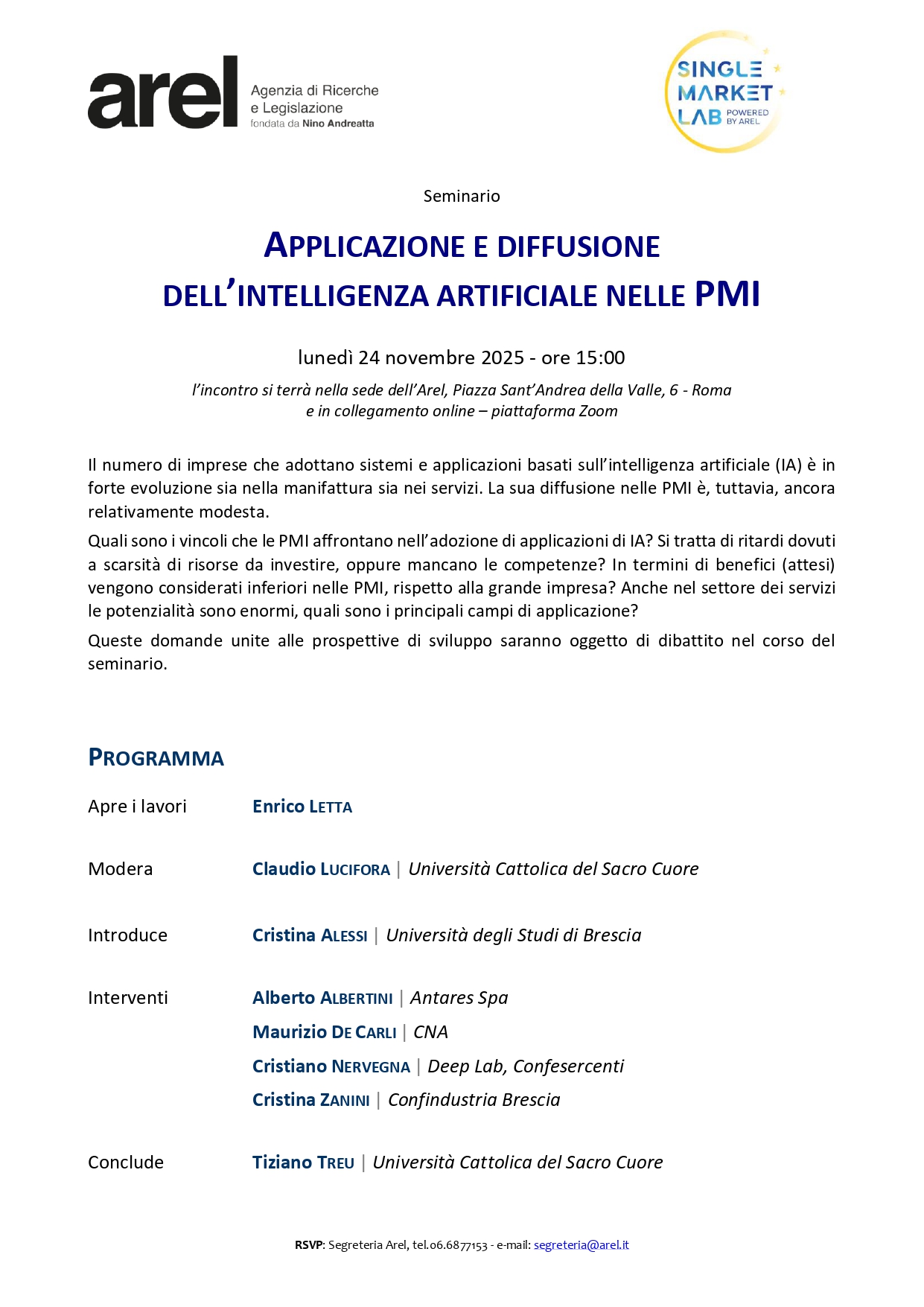 24 novembre 2025 – Arel – Piazza Sant’Andrea della Valle, 6 – ore 15,00 – Roma – e in collegamento online – piattaforma Zoom