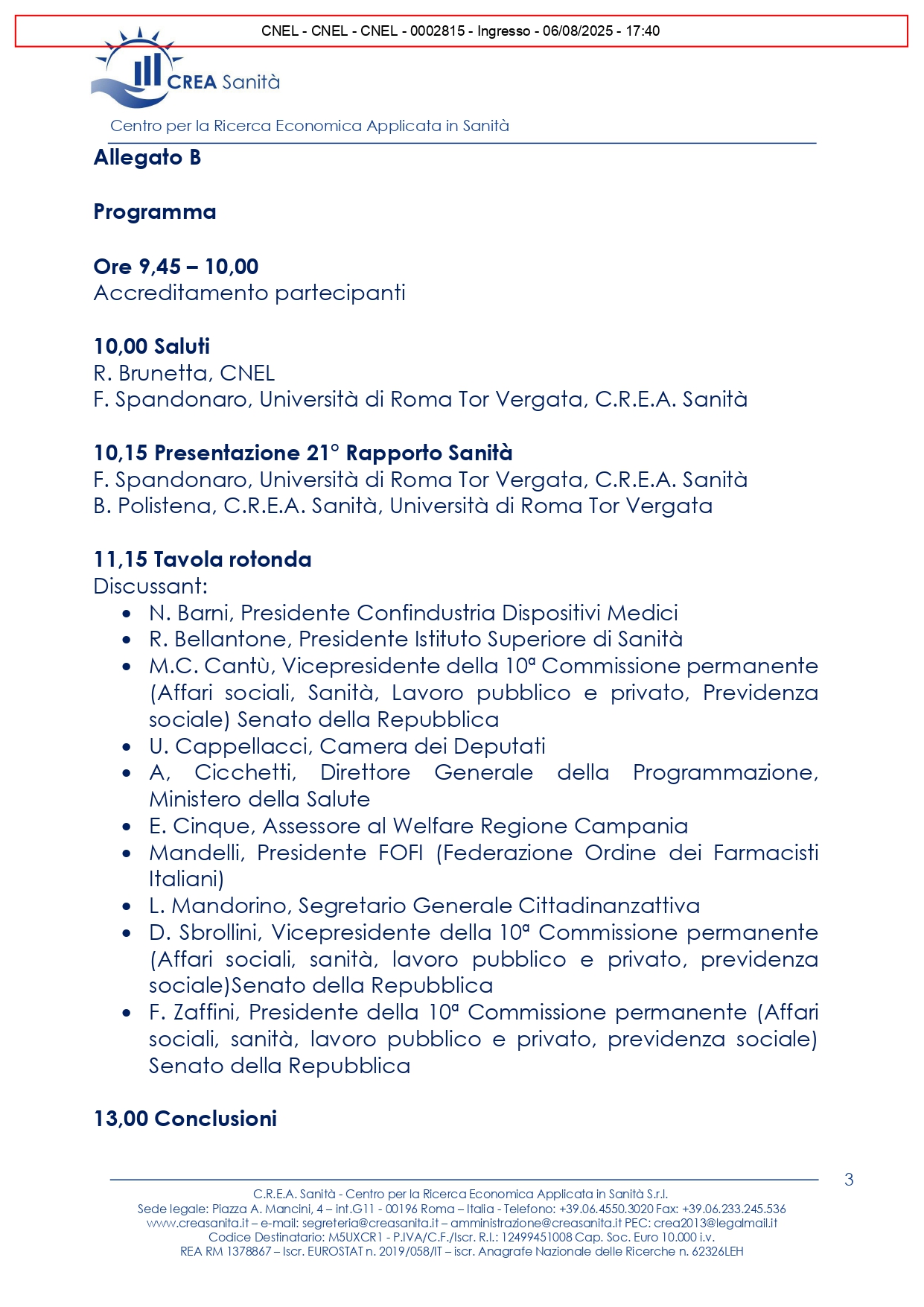 C.R.E.A. SANITA’ – PRESENTAZIONE DEL 21ESIMO RAPPORTO