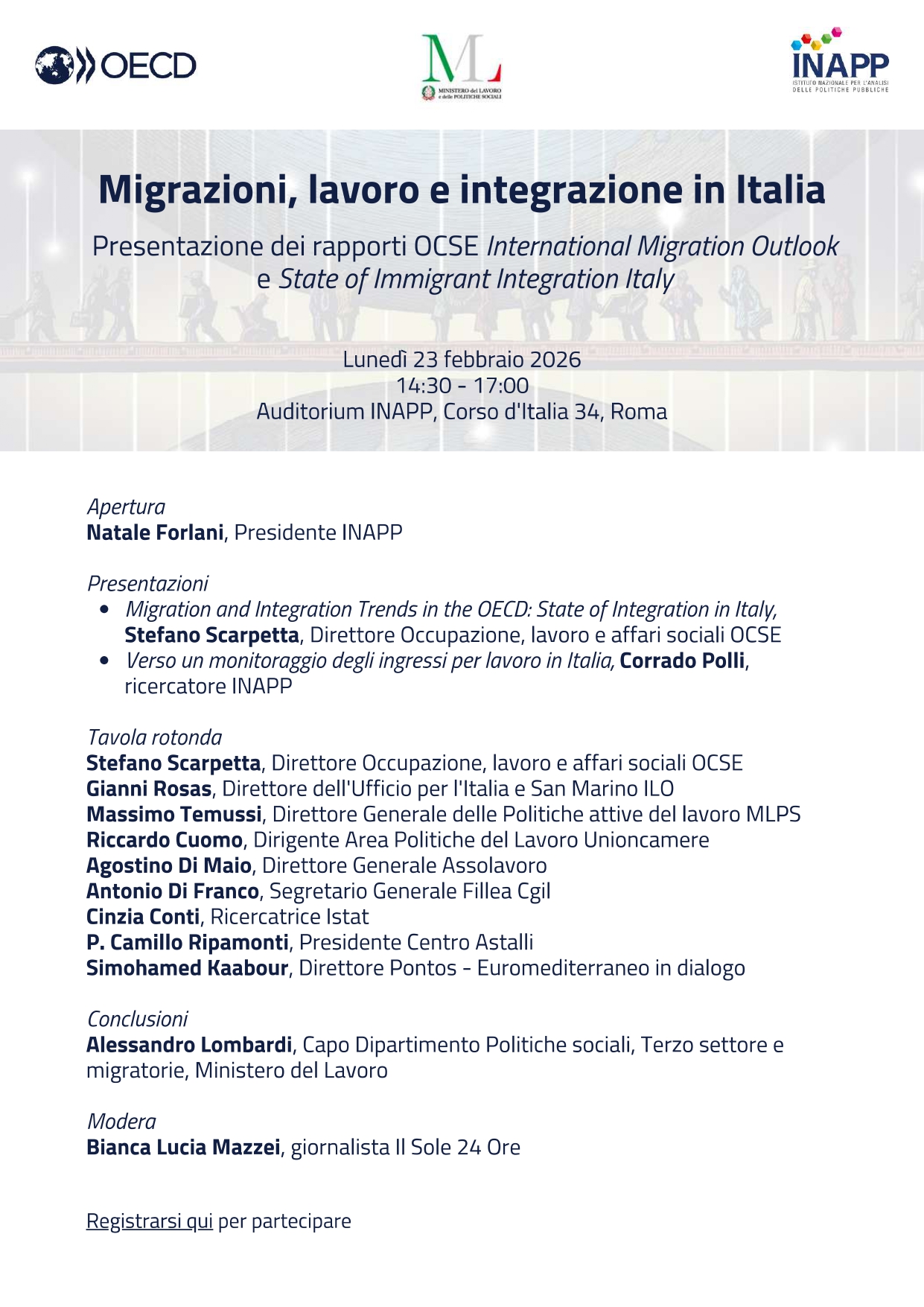 23 febbraio 2026 – Auditorium INAPP – Corso d’Italia, 34 – dalle ore 14,30 alle ore 17,00 – Roma
