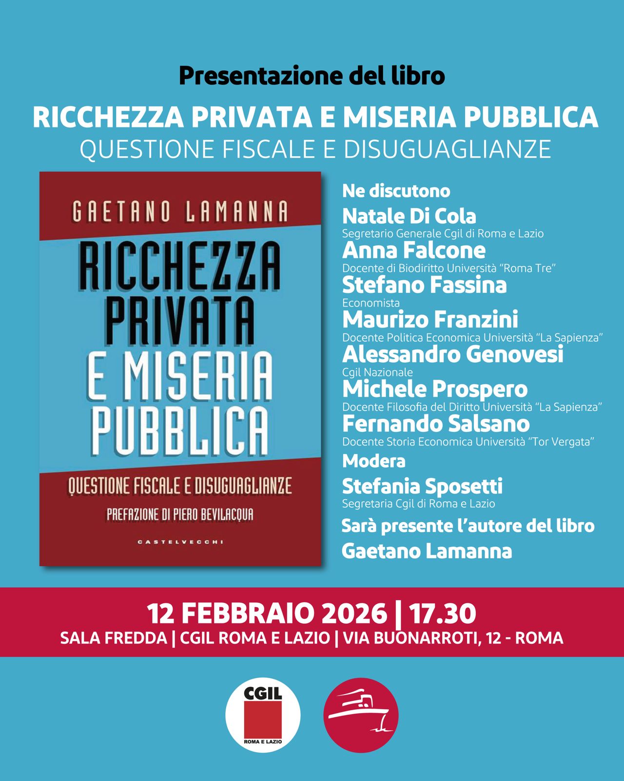 Presentazione del libro di Gaetano Lamanna “Ricchezza privata e miseria pubblica. Questione fiscale e disuguaglianze” (Castelvecchi, 2025).