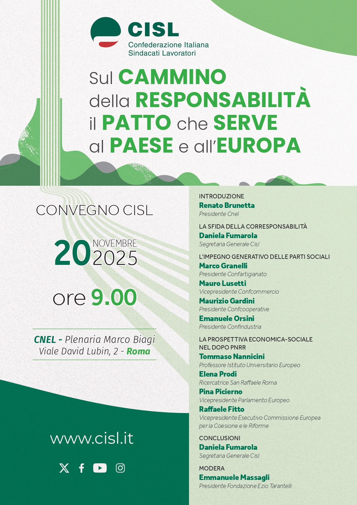 20 novembre 2025 – Cnel – Plenaria Marco Biagi – Viale Davide Lubin, 2 – Ore 9,00 – Roma