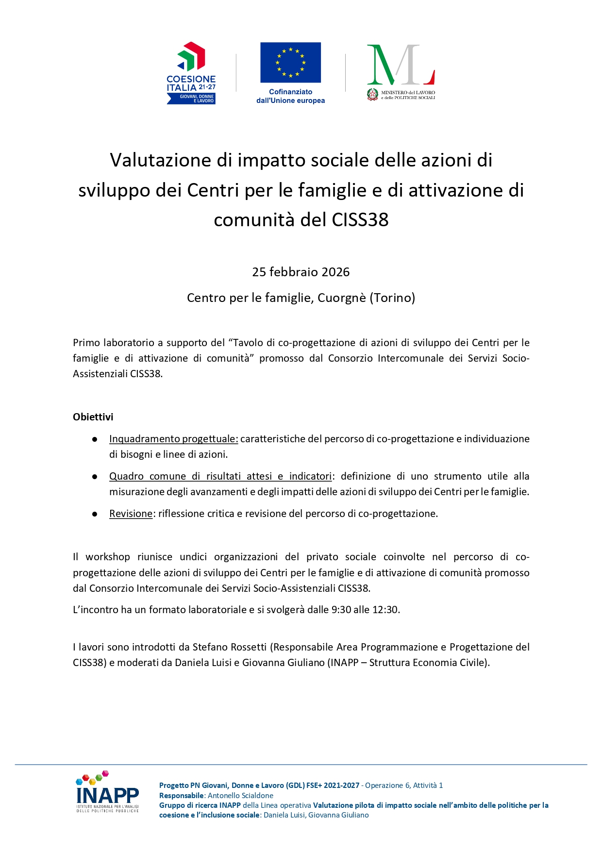 VALUTAZIONE DI IMPATTO SOCIALE DELLE AZIONI DI SVILUPPO DEI CENTRI PER LE FAMIGLIE E DI ATTIVAZIONE DI COMUNITA’ DEL CISS38