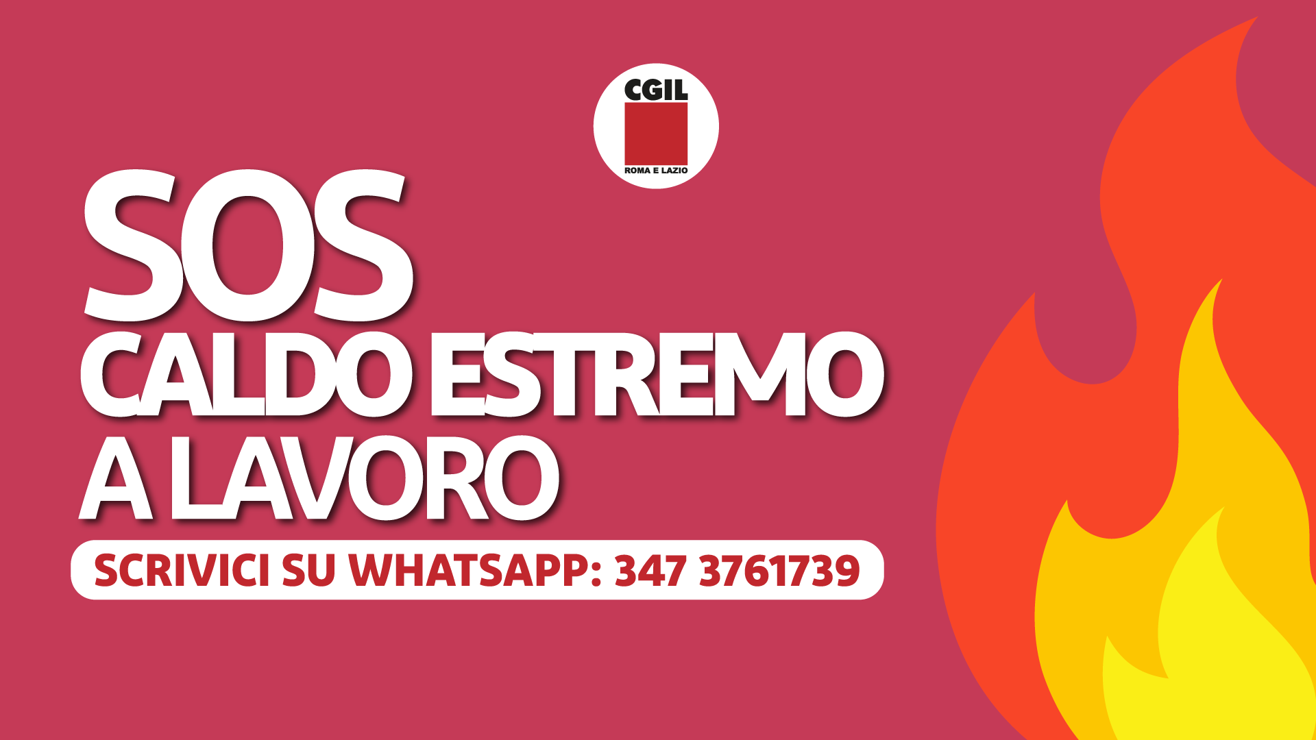 Un numero di cellulare dedicato per segnalare su Whatsapp le situazioni di pericolo a cui possono essere esposti i lavoratori nelle giornate di caldo estremo. L’iniziativa è della Cgil di Roma e Lazio, e il numero a cui è possibile inviare segnalazioni è 347 376 1739. “La Cgil, con tutte le sue strutture, si sta mobilitando per ridurre i rischi. Ecco perché chiediamo alle lavoratrici e ai lavoratori di segnalare alle rsu, alle rsa, ad rls e rlst, delegate e delegati della Cgil, o al nostro numero whatsapp, ogni situazione di pericolo affinché si possa intervenire tempestivamente”, spiega il segretario generale Natale Di Cola.
