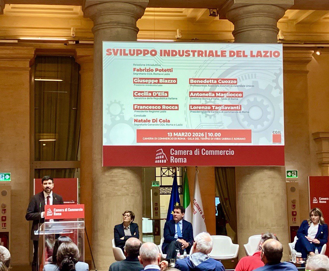 E se pure si parte da una regione, l’obiettivo è chiaramente più ampio, e il modello di collaborazione, diciamo così, è esportabile in tutto il paese. È questo, in sintesi, il senso dell’appuntamento organizzato dalla Cgil di Roma e Lazio alla sede della Camera di Commercio della capitale, meglio nota come Tempio di Adriano: presentare le proprie proposte e ascoltare le opinioni degli interlocutori invitati a discuterne. “Sviluppo industriale del Lazio, le nostre proposte su lavoro e innovazione” il titolo del convegno, a cui hanno preso parte, tra gli altri, il presidente della Regione Francesco Rocca, il presidente di Unindustria Lazio Giuseppe Biazzo, la parlamentare Pd Cecilia D’Elia, la docente di economia aziendale a Cassino Benedetta Cuozzo, il presidente della Camera di Commercio Lorenzo Tagliavanti, oltre ai rappresentanti di tutte le categorie e le strutture territoriali della Cgil laziale.